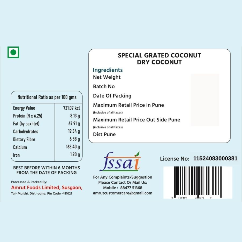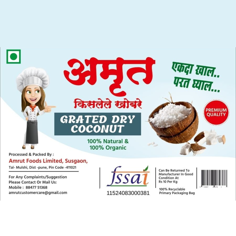 With our commitment to quality, hygiene, and sustainability, every pack of Amrut Foods grated dry coconut delivers authentic taste and wholesome nutrition you can trust.